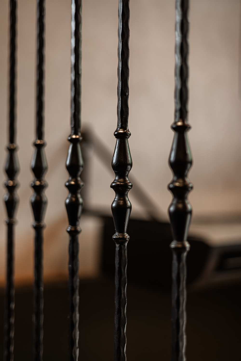 The upstairs area introduces a sense of openness and airiness while continuing to honor the home’s original architecture. Slatted wooden panels and delicate railing details frame the mezzanine, where a beautiful banquette seating zone wraps around the corner, bathed in soft ambient lighting. Overhead, the restored ceiling fans and coffered ceilings pay tribute to the past, breathing life into every meal served below. A thoughtfully placed indoor tree adds a grounding natural element, connecting the space to the organic roots of Grok’s cuisine.