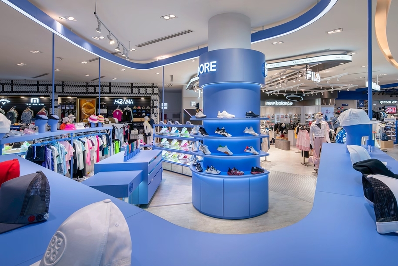Zoning within the store ensures effortless navigation between curated sections, from sneaker highlights to premium golf apparel. Every detail, from material selection to integrated lighting, has been thoughtfully orchestrated to create a seamless connection between form and function.
