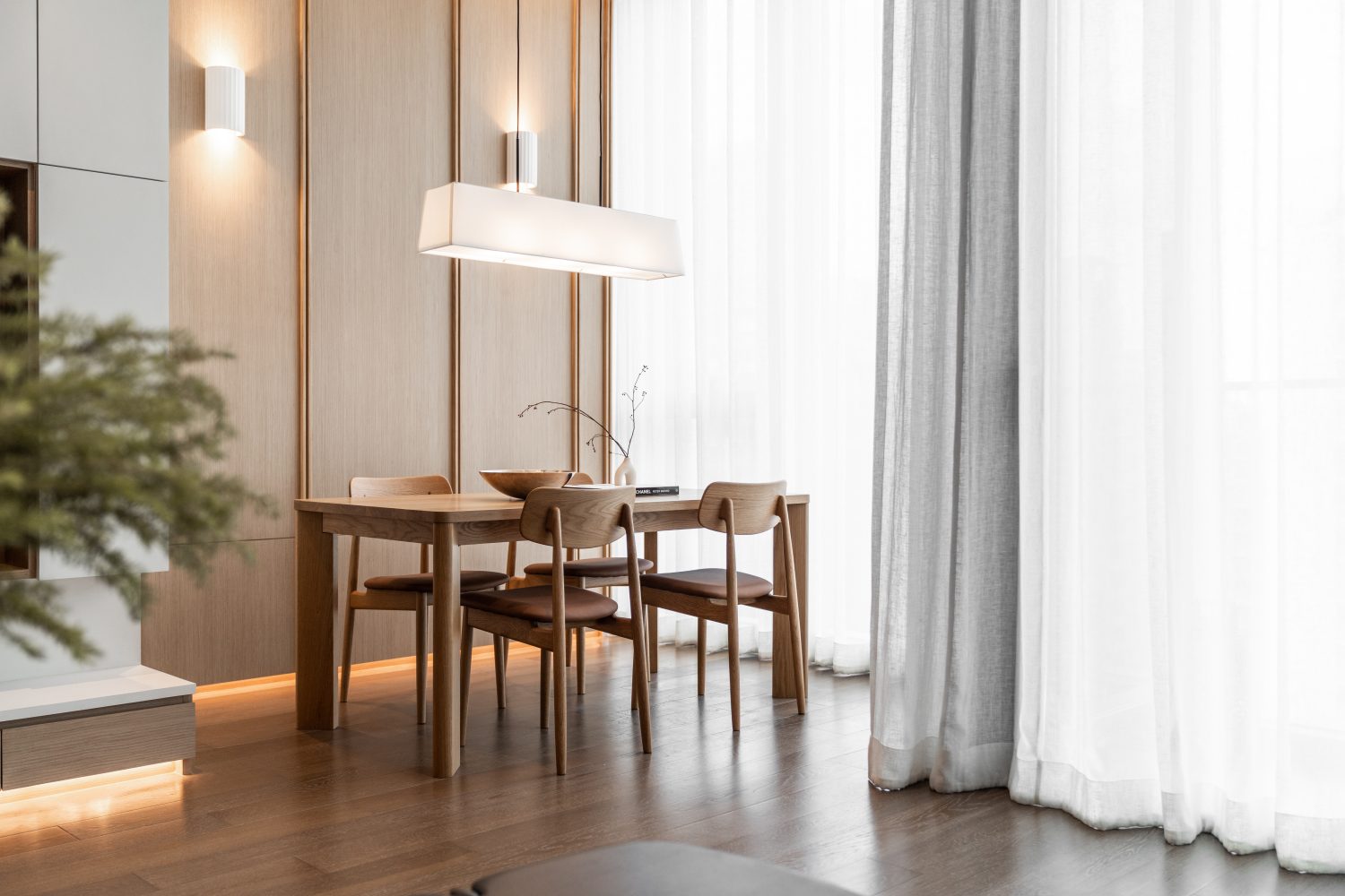- Living & Dining Area: A seamless integration of clean-lined furniture, soft textures, and warm timber finishes sets the tone for an inviting yet refined atmosphere.