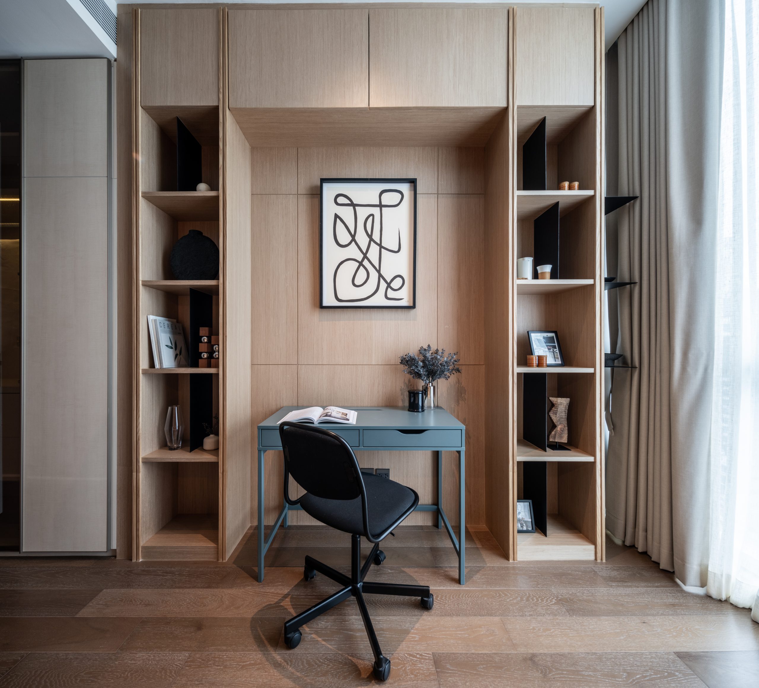 - Work & Study Zone: Built-in shelving and a minimalist desk design offer functionality without sacrificing style, creating an inspiring corner for creativity and focus.
