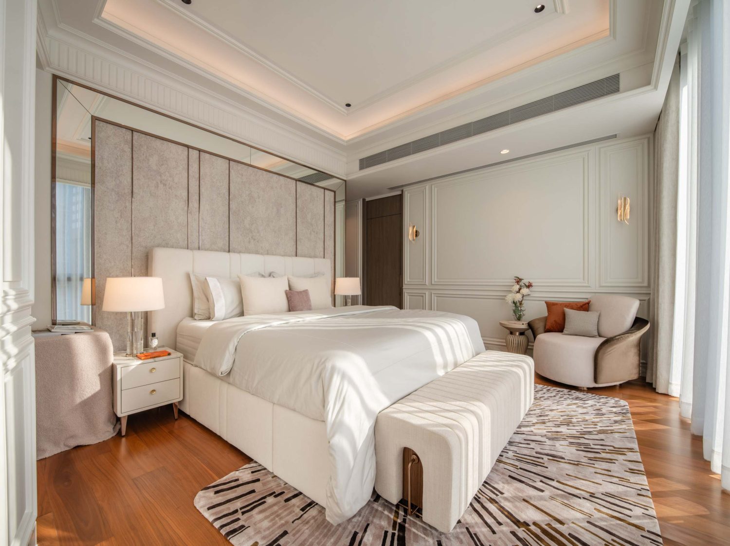 • Private Quarters: The bedrooms embody tranquility, combining warm wood tones, soft textiles, and tailored details to create an inviting retreat.