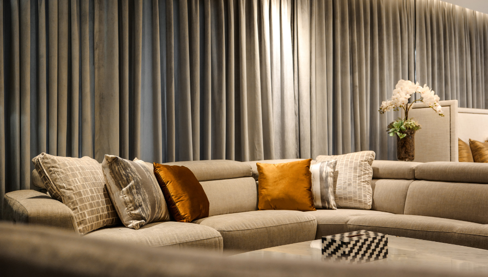 Every element has been thoughtfully curated to achieve harmony and flow. Bespoke furniture pieces, crafted with meticulous attention to detail, integrate effortlessly into the layout, creating both function and visual cohesion. The living area becomes a focal point, with its plush seating, layered textures, and accent cushions that introduce subtle pops of color, a perfect blend of elegance and personality.