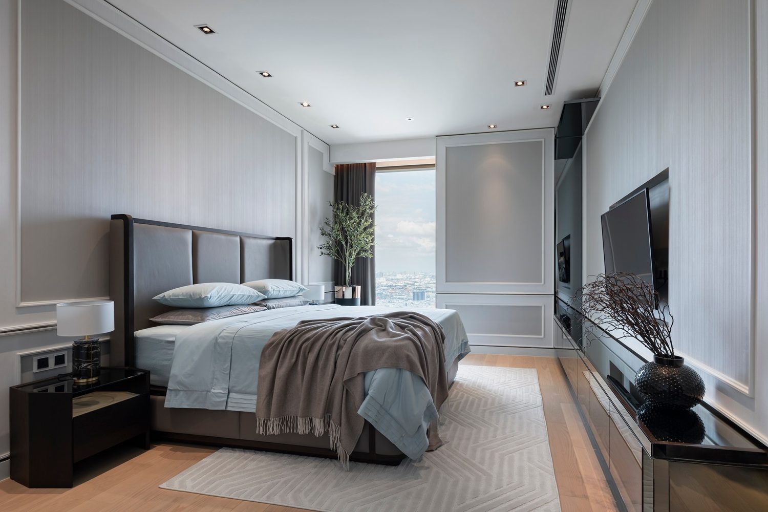 The concept behind this residence centers on refined minimalism, open layouts, harmonious textures, and bespoke detailing, allowing the breathtaking city views to become an integral part of the interior design narrative.