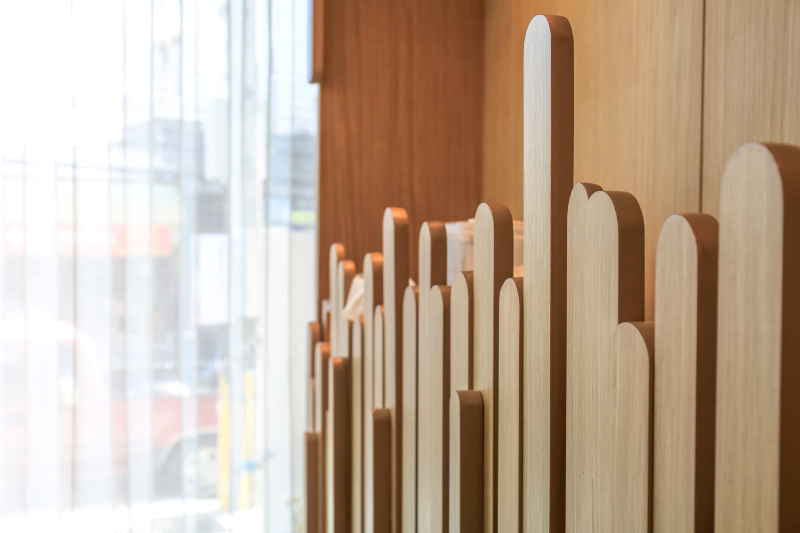 Bespoke details complete the story of the clinic. From hidden storage systems that maintain the clean, minimalist aesthetic to wood paneling designed with vertical rhythmic patterns, each element contributes to a sense of order and sophistication. The wooden finishes, enhanced with carefully integrated textures, add depth and visual interest without overwhelming the space.