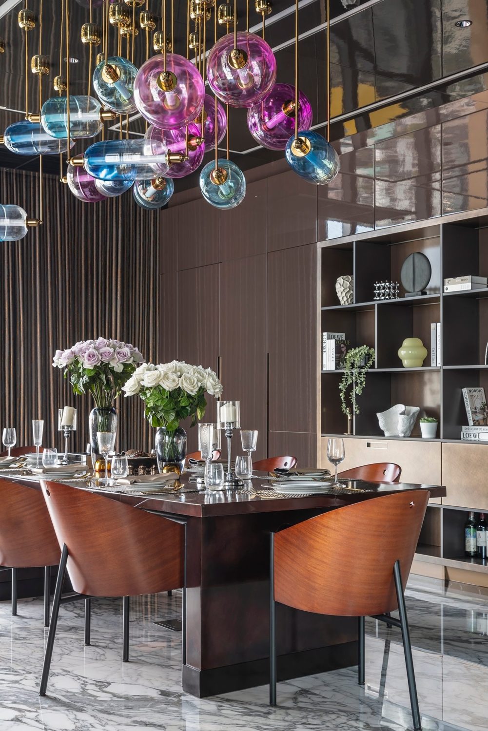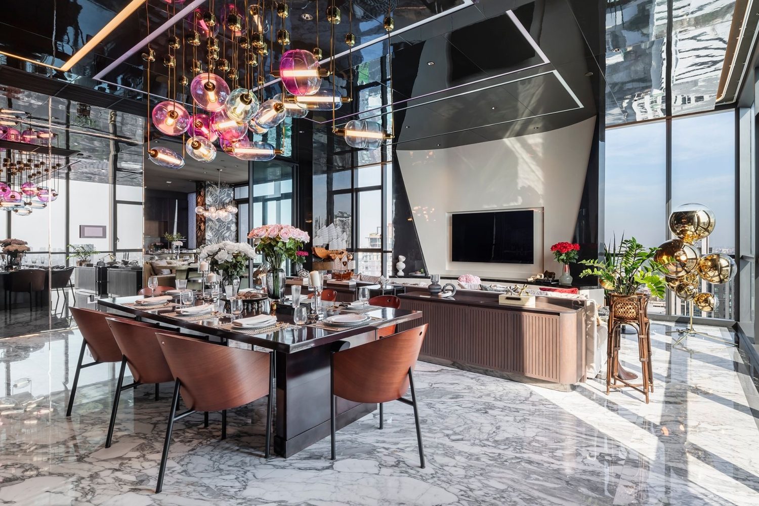 Lighting plays a transformative role, enhancing the atmosphere and highlighting intricate details. Statement chandeliers add a sense of drama to the dining area, soft accent lighting in the private suites creates intimacy, while expansive windows invite natural daylight to flood the interiors, amplifying openness and views of the city skyline.